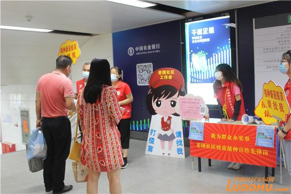 客運繁忙的大劇院地鐵站就在老圍社區(qū),老圍社區(qū)黨委就把“疫苗接種宣傳先鋒崗”從小區(qū)卡口擴展到地鐵口。在川流不息的地鐵口,宣傳崗上的大字“我為群眾辦實事,老圍社區(qū)疫苗接種宣傳先鋒崗”,金光閃閃格外醒目。旁邊的小喇叭循環(huán)播放:“接種疫苗人人有責(zé),打第二針疫苗請找我,不用排隊不用預(yù)約,專車接送?!?/p>