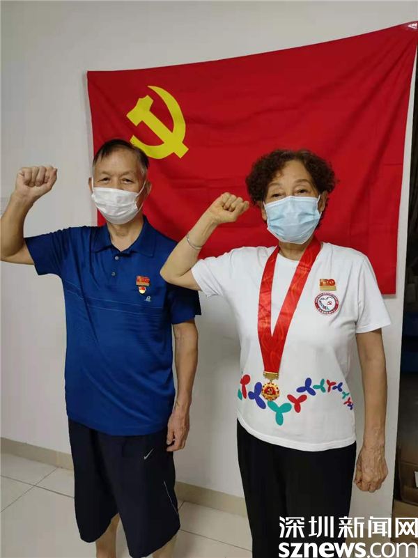 劉喜蘭是長(zhǎng)嶺社區(qū)惠名花園的一位高達(dá)71歲的老黨員,“聽(tīng)黨話、跟黨走”是她畢生的追求。7月1日這天,她收到黨組織頒發(fā)的“光榮在黨50年”紀(jì)念章,她已經(jīng)入黨52周年了。她的老伴龔訓(xùn)虎及大兒子龔競(jìng)也是黨員,龔訓(xùn)虎大爺也已經(jīng)75歲高齡了,入黨接近50年。退休前,她和老伴都是光榮的人民教師,一生在湖南益陽(yáng)教書(shū)育人,為社會(huì)培養(yǎng)了很多棟梁之才,2007年退休后,她和老伴來(lái)到深圳,繼續(xù)發(fā)揮余熱,積極參與社區(qū)義工活動(dòng)。
