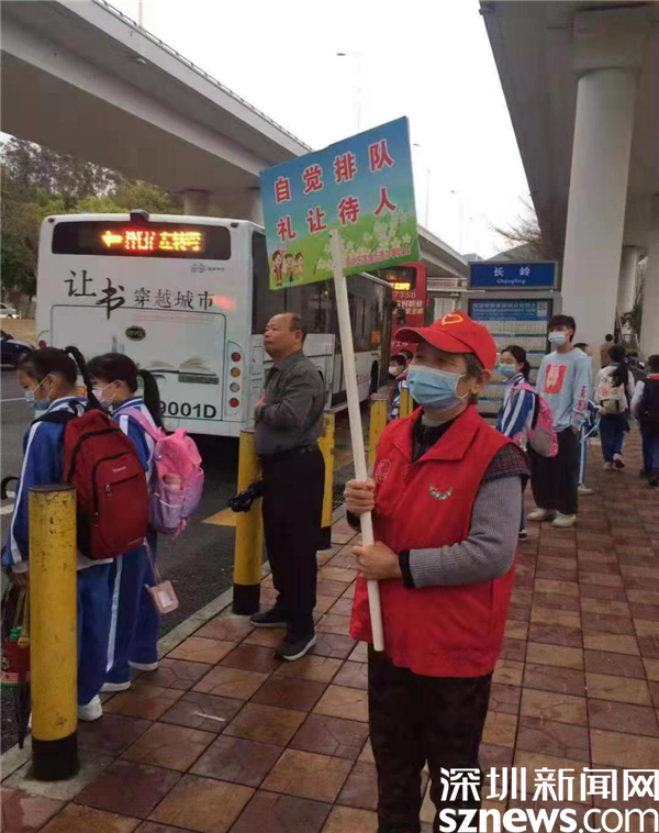 蓮塘街道長(zhǎng)嶺社區(qū)的趙文英是一位72歲的老人,老家在河南信陽(yáng)。退休前,她是一所中專學(xué)校的醫(yī)護(hù)教師,退休后,她隨子女來(lái)到深圳。有天,她無(wú)意間注意到長(zhǎng)嶺社區(qū)長(zhǎng)嶺公交站來(lái)往車輛較多,上下學(xué)期間該公交站小朋友較多,如果沒(méi)有一個(gè)人進(jìn)行現(xiàn)場(chǎng)管理或指引,很容易發(fā)生意外事故。于是她主動(dòng)無(wú)償堅(jiān)持在長(zhǎng)嶺公交站臺(tái)做義工維持秩序,用一片愛(ài)心去守護(hù)孩子的安全,這一做就是好幾年。