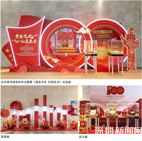 水貝壹號作為多家上市珠寶公司的總部基地,石妍說,作為黃金珠寶行業(yè)發(fā)展的見證者和實踐者,水貝壹號始終堅持以黨建為重要抓手,弘揚光榮傳統(tǒng)、賡續(xù)紅色血脈,為熱烈慶祝中國共產(chǎn)黨成立100周年,回顧中國共產(chǎn)黨波瀾壯闊的奮斗歷程,熱情歌頌建黨百年的輝煌業(yè)績,從7月1日始至10月31日止為期100天,推出以“黃金文化紅色東方”為主題的系列展覽活動,展覽內(nèi)容包括“1921年一大南湖紅船”滌蕩百年文創(chuàng)作品展、“三?!本裎膭?chuàng)作品展、《深圳八景》金箔剪紙藝術(shù)展等,獻禮建黨百年華誕。每天吸引大批慕名而來的黨員和市民圍觀打卡,近5000余人次到場參加,媒體曝光傳播10萬余次。