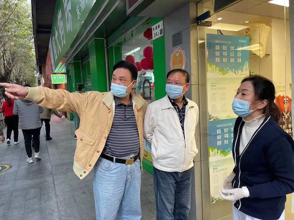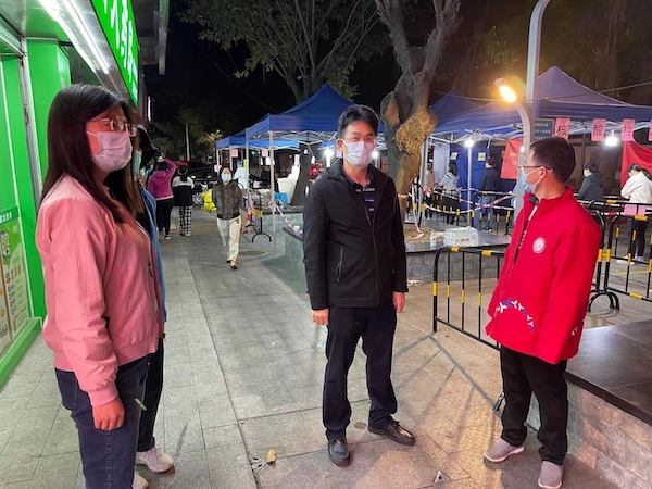 隨后,文促會一行來到了東湖街道大望社區(qū)。在社區(qū)核酸檢測現(xiàn)場,大望社區(qū)黨委書記高桂秀正在指揮現(xiàn)場工作;大望實業(yè)公司董事長何雨聰和大望社區(qū)副書記李雪康兩人都面帶倦容,明顯近期睡眠嚴重不足。據(jù)了解,高桂秀近期一直綁著護腰墊片,帶病堅持抗疫。