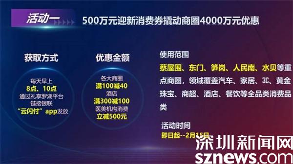 為了讓大家買得舒心、花得開(kāi)心,新春之際羅湖再次狂灑500萬(wàn)消費(fèi)券,并聯(lián)合各大商家商圈開(kāi)展優(yōu)惠活動(dòng)。