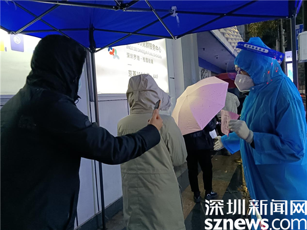讀特客戶端·深圳新聞網(wǎng)2022年2月24日訊(記者 劉嘉敏 通訊員 楊紀(jì)歐)雖然這幾天的冷風(fēng)冷雨一直不停,氣氛低至6度,但深圳市羅湖區(qū)桂園街道老圍社區(qū)設(shè)在各處的核酸檢測(cè)點(diǎn)一直在有序進(jìn)行著。人們打著雨傘排隊(duì),社區(qū)工作人員和志愿者高效地引導(dǎo),讓等候的人快速地采樣,協(xié)助不會(huì)操作的人出示粵核酸碼。工作人員的手腳都凍僵了,但沒(méi)有人退縮,用自己的“凍”起來(lái),守護(hù)著深圳人的綠碼,捍衛(wèi)著社區(qū)的平安。
