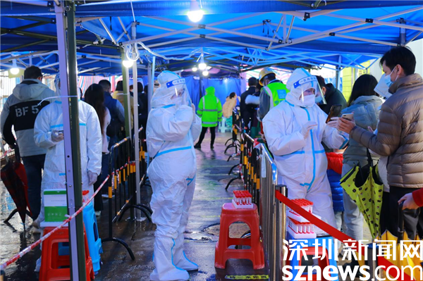 讀特客戶端·深圳新聞網(wǎng)2022年2月25日訊(記者 吳艷 通訊員 蔡歡 黃利生)連日來氣溫驟降,風(fēng)雨交加,然而在羅湖區(qū)東曉街道的大街小巷上,還有這樣一群人,他們身穿防護(hù)服,把守在各個路口和小區(qū)門口,查驗(yàn)居民“雙碼”;他們頂著風(fēng)雨,挨家挨戶上門動員居民核酸檢測;他們晝夜不停,打電話、核數(shù)據(jù),確保核酸檢測不漏一人;他們在6、7度的寒冷天氣里堅守核酸檢測點(diǎn),引導(dǎo)居民有序排隊檢測核酸。這些抗疫一線工作者,猶如一道道銅墻鐵壁,鑄起守衛(wèi)轄區(qū)群眾生命健康的安全防線。
