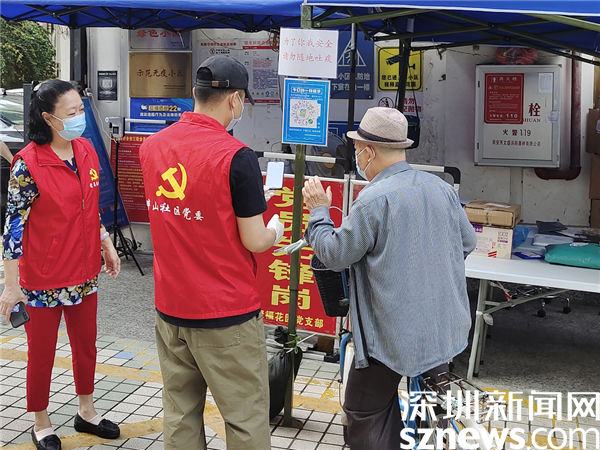3月21日上午,在聚?;▓@黨員先鋒崗,老黨員張瑩和年輕黨員藍(lán)國亮在幫助居民掃場所碼。像這樣的新老黨員齊上陣,在畔山社區(qū)各黨支部還有很多,近日,轄區(qū)各核酸采樣點(diǎn)、小區(qū)出入口和城中村圍合卡點(diǎn),處處可見鮮紅的黨旗和忙碌的紅馬甲,他們用實(shí)際行動(dòng)影響并帶動(dòng)更多的熱心市民群眾參與社區(qū)服務(wù),為一線防疫工作“添磚加瓦”。