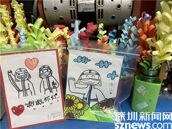 羅湖區(qū)蓮塘小學(xué)某班班長見醫(yī)護(hù)人員和義工志愿者日夜操勞,不辭辛苦,號(hào)召全班同學(xué)為防疫人員“送溫暖”。有的同學(xué)親手制作五顏六色的精美手折紙花,還有些同學(xué)別出心裁的繪制了“感謝大白”賀卡,禮物制作完成后,全班同學(xué)分頭行動(dòng),將手折紙花送到各核酸采樣點(diǎn)醫(yī)護(hù)人員和志愿者手中?!拔覀儙筒簧鲜裁?,做些力所能及的事情,為大哥哥大姐姐送去感動(dòng)和力量,也是為抗疫做貢獻(xiàn)?!眮碜粤_湖中醫(yī)院,在蓮塘村七巷小廣場支援的醫(yī)護(hù)人員們收到同學(xué)們送來的“禮物”非常開心,紛紛表示,雖然每天工作很辛苦,但能得到群眾尤其是孩子們的肯定十分幸福,禮物雖小,卻無比溫暖和感動(dòng)。