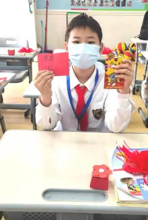 502班的返校儀式“愛意濃濃”。紅色拉花讓每個孩子都喜氣洋洋;桌上班主任老師親手折的小禮盒和各式各樣的糖果讓孩子們甜蜜加倍;還有暖心“紅包”,里面有老師們一筆一畫書寫給孩子們的驚喜,更是寄托了無限的關心與激勵。