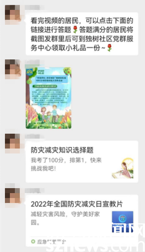 “原來(lái),用滅火器滅火時(shí),滅火器的噴射口應(yīng)該對(duì)準(zhǔn)火焰的根部”“電腦著火了,應(yīng)立即拔掉電源后用濕棉被蓋住電腦,而不是給電腦澆水”“震級(jí)相差一級(jí),釋放能量相差約32倍”......微信群里,居民群眾一邊觀看學(xué)習(xí)視頻,一邊積極分享學(xué)習(xí)心得、開(kāi)展熱烈討論。當(dāng)日,社區(qū)居民李女士連續(xù)作答兩次,均未獲得滿分,不由得感嘆:“這些內(nèi)容看似了解,實(shí)操起來(lái)還是有點(diǎn)分不清楚,通過(guò)學(xué)習(xí)和答題,重新認(rèn)識(shí)了防災(zāi)減災(zāi)的重要性,增長(zhǎng)了防災(zāi)減災(zāi)知識(shí)?!?/span>