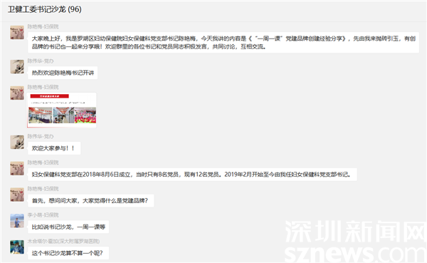 讀特客戶端·深圳新聞網(wǎng)2022年6月20日訊(記者 吳艷 通訊員 韓珊)為落實基層黨建“標(biāo)準(zhǔn)+質(zhì)量+示范”要求,推動黨建業(yè)務(wù)工作深度融合,幫助基層黨組織找準(zhǔn)黨建品牌創(chuàng)建的切入點和實施路徑,6月16日,羅湖區(qū)委衛(wèi)生健康工委圍繞基層黨建的熱點難點問題,舉辦了一場以交流激發(fā)思考的“書記沙龍”,區(qū)婦保院婦女保健科書記陳艷梅線上分享黨建品牌創(chuàng)建經(jīng)驗和服務(wù)群眾的心得體會,68名支部書記熱烈探討,共同交流提高。