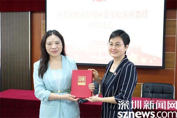 現(xiàn)場,劉亞峰還為中共深圳市委黨校嚴紅梅副教授頒發(fā)聘書,聘請其為羅湖區(qū)委黨??妥淌?。