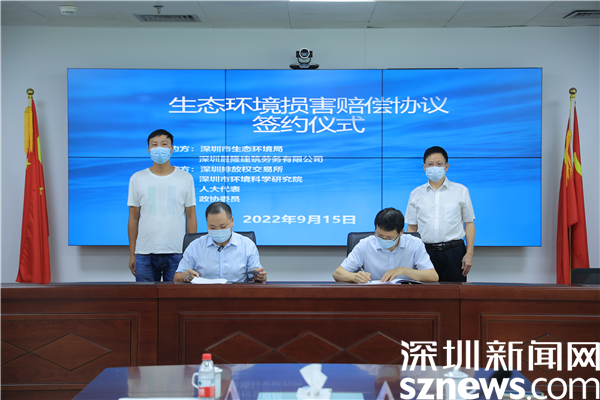 在深圳市環(huán)境科學研究院、深圳排放權(quán)交易所、人大代表、政協(xié)委員共同見證下,羅湖管理局局長唐湘良與深圳某公司代表簽署生態(tài)環(huán)境損害賠償協(xié)議。協(xié)議約定,深圳某公司在簽約后,將生態(tài)環(huán)境損害賠償費用存入在深圳排放權(quán)交易所開設(shè)的賬戶,并完成資金凍結(jié)。該資金全額用于購買碳普惠產(chǎn)品,支持全民減排、低碳出行。
