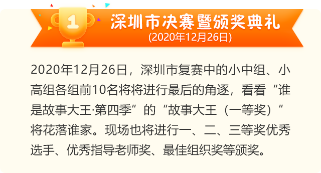 讓閱讀成為動人的風景,讓故事的魅力感動深圳。為助力建設(shè)良好的青少年閱讀環(huán)境,激發(fā)學(xué)生閱讀興趣,倡導(dǎo)親子閱讀,共建和諧家庭關(guān)系。2020年,第二十一屆深圳讀書月主題活動“誰是故事大王·第四季”在共青團深圳市委員會、深圳市關(guān)愛行動組委會辦公室的指導(dǎo)下再出發(fā)。更長的活動周期,更豐富的參與形式,更專業(yè)的賽制,“誰是故事大王·第四季”等你來解鎖與挑戰(zhàn)!
