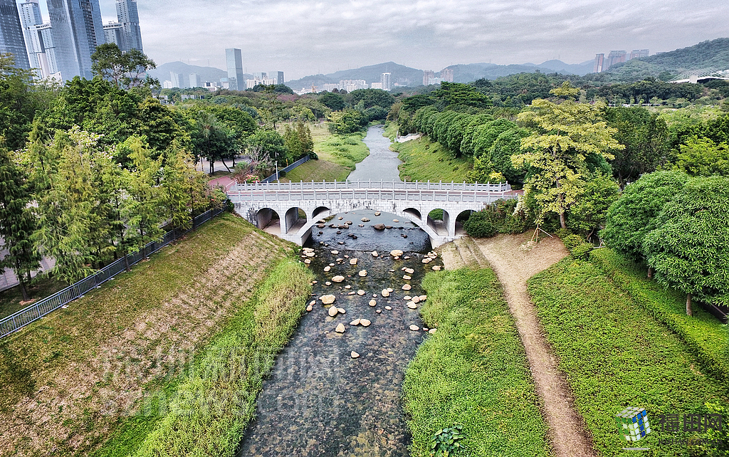 穿園而過(guò)的福田河,對(duì)中心公園的生態(tài)和景觀有很大的提升。