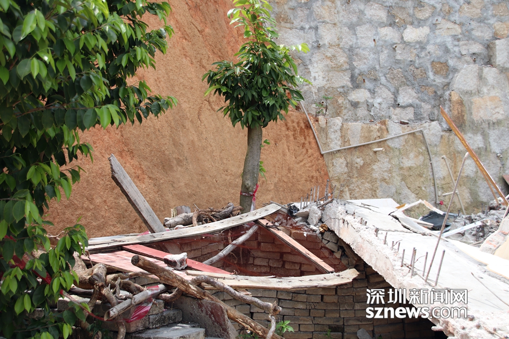 記者在現(xiàn)場(chǎng)看到,違法建筑已基本拆除完畢,墻體露出鋼筋,建筑垃圾還未來(lái)得及清理??可巾斠粋?cè)的地塊略大,還修有面積不小的水塘,從山上引流的山泉水還在匯入池中,水塘旁的石桌石凳分量十足,想來(lái)當(dāng)初光是運(yùn)建材上山已是不小的工程。