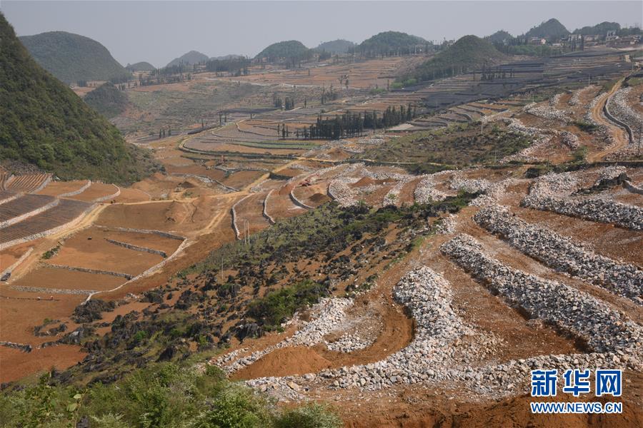 西疇縣興街鎮(zhèn)“三光”片區(qū)石漠化綜合治理工作接近尾聲,一片片石山被壘成臺地(2016年4月14日攝)。荒山禿嶺,怪石盤亙;河道斷流,重山阻隔。這是云南西疇,一個被專家稱為“失去生存條件”的地方。就在這樣一個地方,當(dāng)?shù)馗刹咳罕娨浴暗炔皇寝k法,干才有希望”的奮斗精神,戰(zhàn)天斗地、自力更生。目前,西疇縣公路密度是全省3倍,行政村、自然村通公路率均達(dá)100%。今年,西疇縣計劃脫貧摘帽。新華社記者吉哲鵬攝