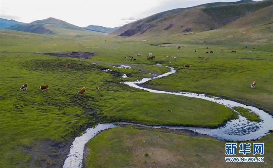 6月6日無人機拍攝的進入全面返青期的內(nèi)蒙古赤峰市阿魯科爾沁草原。