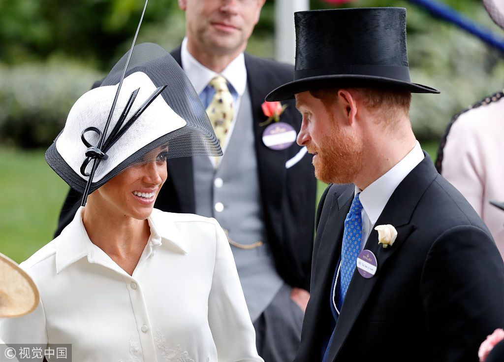 當?shù)貢r間2018年6月19日,英國阿斯科特,英國阿斯科特皇家賽馬會首日,梅根王妃出席皇家賽馬會。