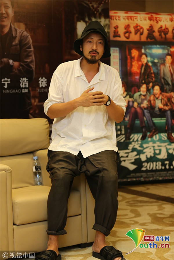 2018年7月8日,王傳君現(xiàn)身青島宣傳新片《我不是藥神》。憑借《藥神》“咸魚翻身”的他不改本色,戴漁夫帽蓄著胡須造型似日系大叔,踩著拖鞋挽著褲腳公開亮相,相當(dāng)隨性。