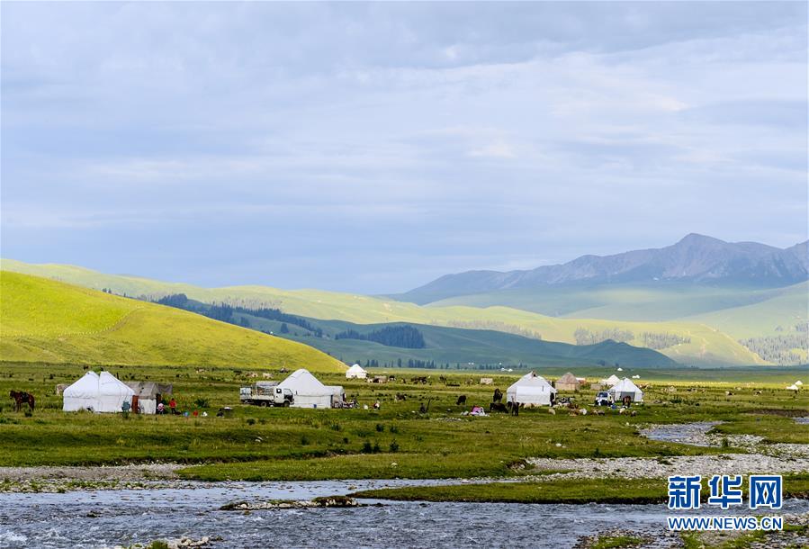 進(jìn)入7月,被譽(yù)為“空中草原”的新疆那拉提景區(qū)日均入園游客在5000人次左右,迎來旅游旺季。那拉提景區(qū)地處新疆伊犁河谷東端,是世界四大草原之一的亞高山草甸植物區(qū),自古以來就是著名的牧場。新華社記者 趙戈 攝