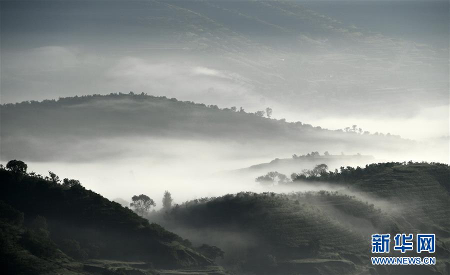 寧夏彭陽:最美旱作梯田 云海宛如仙境