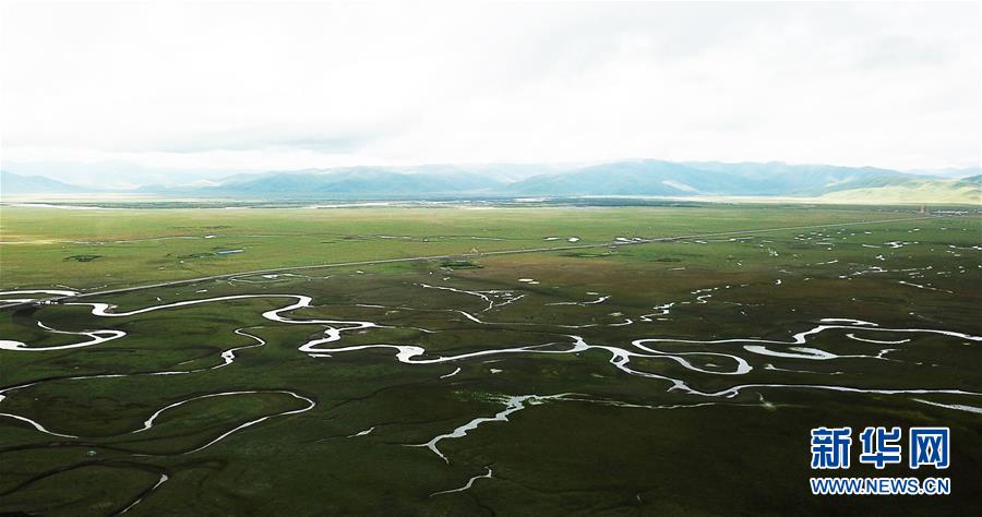 這是瑪曲縣阿萬倉濕地(7月31日無人機拍攝)。 新華社記者 陳斌 攝