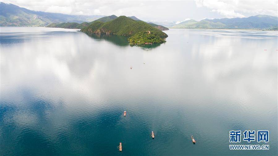 這是無人機拍攝的瀘沽湖美景,瀘沽湖至今保持I類水質(zhì)(7月30日攝)。 新華社記者 楊牧源 攝