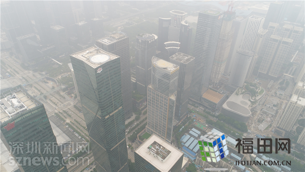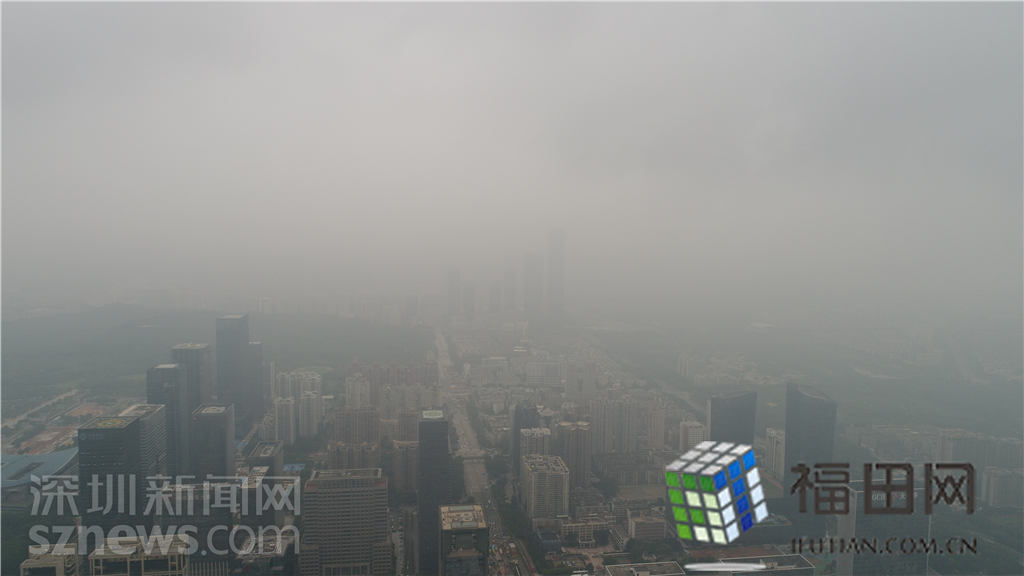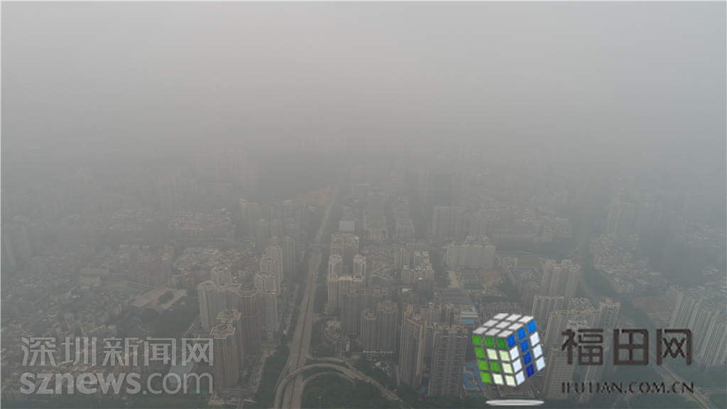 整個(gè)福田中心區(qū)都籠罩在灰霾之中。