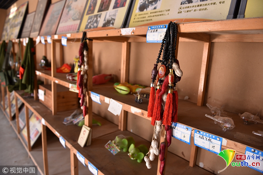 2018年3月11日,在山東省日照市五蓮縣街頭鎮(zhèn)大山深處的李崮寨村,商店內(nèi)擺放的旅游商品。