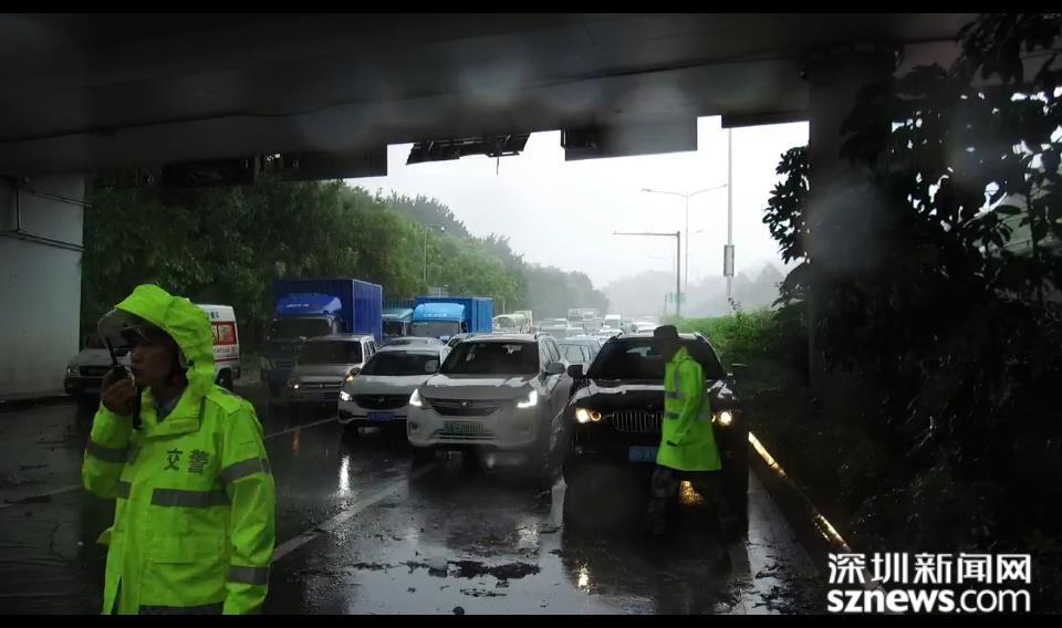 福田區(qū)位于北環(huán)皇崗立交,深圳市水務集團福田分公司梅林所防洪排澇人員,趁風勢雨小,打開雨水箅子排積水。