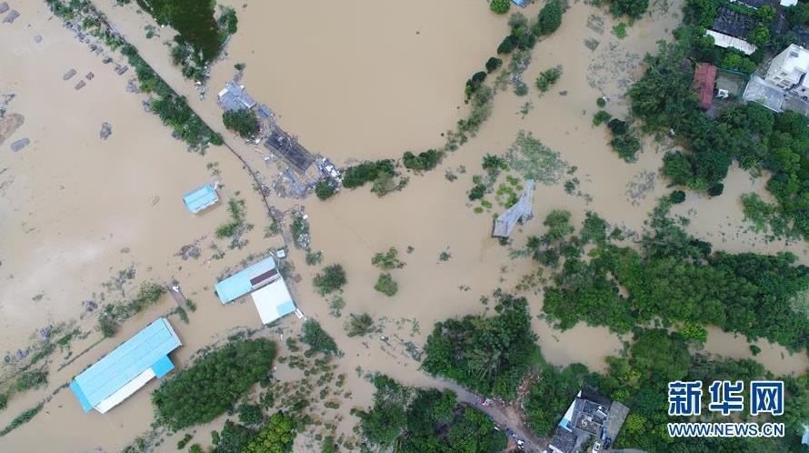 這是9月18日在廣東省陽(yáng)江市陽(yáng)春市拍攝的水浸情況(無(wú)人機(jī)拍攝)。 新華社記者張加揚(yáng)攝