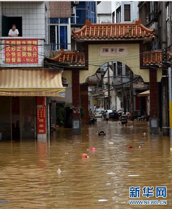 9月18日,陽春市勝利街積水嚴重。 新華社記者 周科 攝