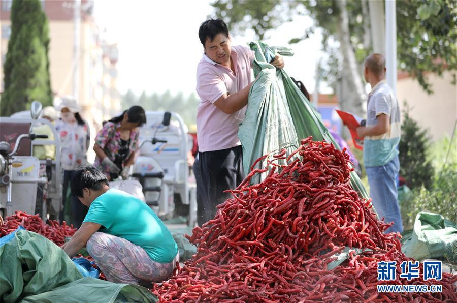 9月16日,阜城縣王集鄉(xiāng)南張莊村農(nóng)民在整理收獲的辣椒。近年來(lái),河北省阜城縣王集鄉(xiāng)在推進(jìn)產(chǎn)業(yè)富民過(guò)程中,積極引導(dǎo)農(nóng)民調(diào)整農(nóng)業(yè)產(chǎn)業(yè)結(jié)構(gòu),按照品種特色化、種植規(guī)模化、產(chǎn)銷(xiāo)一體化的“公司+基地+農(nóng)戶(hù)”的經(jīng)營(yíng)模式,鼓勵(lì)農(nóng)民發(fā)展特色辣椒種植,推行“訂單種植”模式,開(kāi)辟出了一條農(nóng)民創(chuàng)收新路徑。目前,阜城縣王集鄉(xiāng)辣椒種植面積3100余畝,每畝年收益2500元以上,帶動(dòng)當(dāng)?shù)剞r(nóng)民實(shí)現(xiàn)增收。新華社記者朱旭東攝
