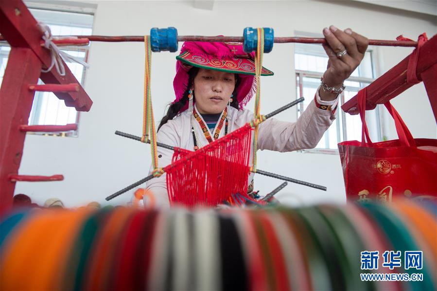 員工卓瑪在鹽湖鄉(xiāng)羌麥村民族手工編織廠工作(9月19日攝)。 2018年,西藏阿里地區(qū)革吉縣鹽湖鄉(xiāng)政府自籌資金成立羌麥村民族手工編織廠,編織廠將當(dāng)?shù)貍鹘y(tǒng)手工編織技藝與市場需求相結(jié)合,生產(chǎn)手提包、圍脖、腰帶、毛毯、藏式頭巾等產(chǎn)品,并參加旅游推介活動,拓寬編織品銷售渠道,助力當(dāng)?shù)鼐用衩撠殹?新華社記者 劉東君 攝