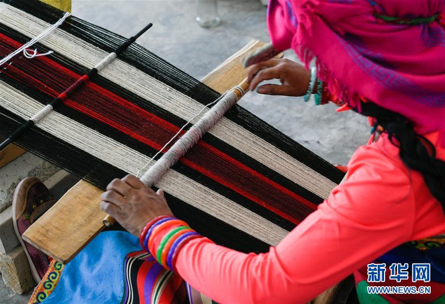 員工在鹽湖鄉(xiāng)羌麥村民族手工編織廠工作(9月19日攝)。 2018年,西藏阿里地區(qū)革吉縣鹽湖鄉(xiāng)政府自籌資金成立羌麥村民族手工編織廠,編織廠將當(dāng)?shù)貍鹘y(tǒng)手工編織技藝與市場(chǎng)需求相結(jié)合,生產(chǎn)手提包、圍脖、腰帶、毛毯、藏式頭巾等產(chǎn)品,并參加旅游推介活動(dòng),拓寬編織品銷售渠道,助力當(dāng)?shù)鼐用衩撠殹?新華社記者 劉東君 攝