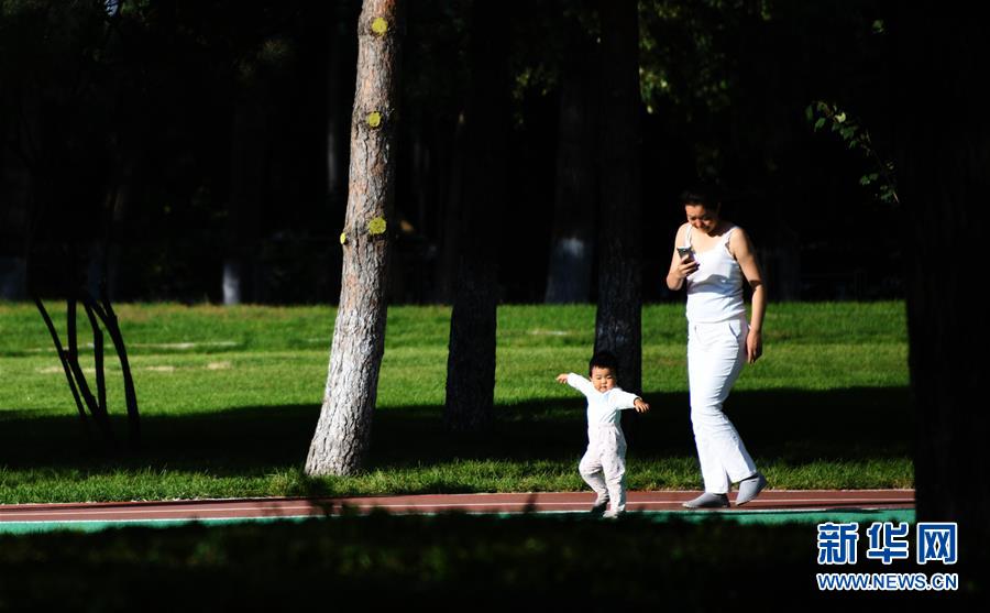 9月25日,一名家長(zhǎng)帶著孩子在湘江公園內(nèi)游玩。 當(dāng)日,哈爾濱市湘江公園正式開(kāi)園迎客。這個(gè)集休閑、健身、娛樂(lè)、觀賞于一體的多功能都市公園由高爾夫球場(chǎng)改造而成,免費(fèi)對(duì)市民和游客開(kāi)放。 新華社記者 王建威 攝
