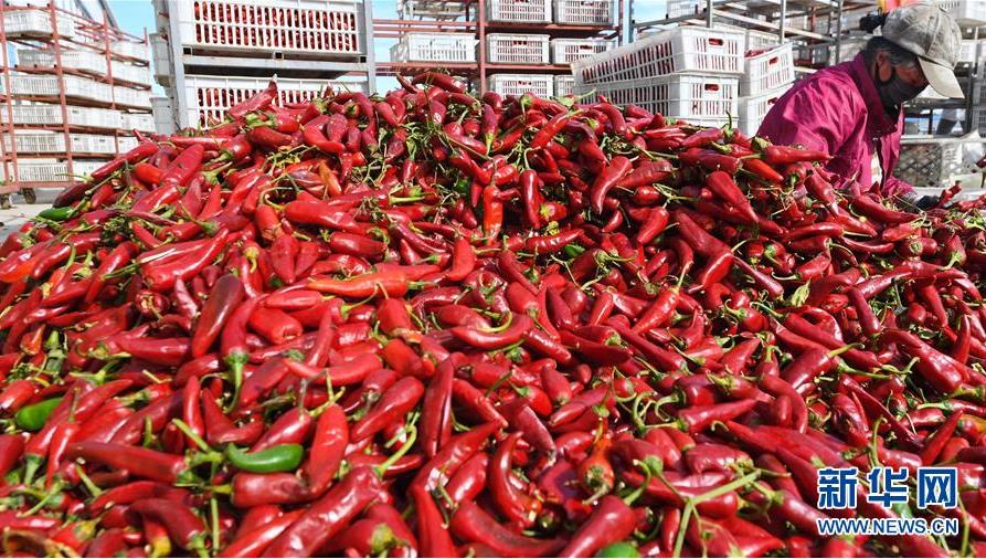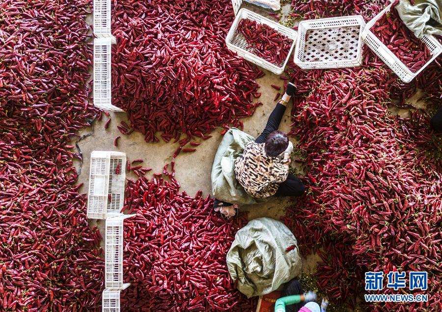 9月16日,阜城縣王集鄉(xiāng)南張莊村農(nóng)民在整理收獲的辣椒。近年來(lái),河北省阜城縣王集鄉(xiāng)在推進(jìn)產(chǎn)業(yè)富民過(guò)程中,積極引導(dǎo)農(nóng)民調(diào)整農(nóng)業(yè)產(chǎn)業(yè)結(jié)構(gòu),按照品種特色化、種植規(guī)?;?、產(chǎn)銷一體化的“公司+基地+農(nóng)戶”的經(jīng)營(yíng)模式,鼓勵(lì)農(nóng)民發(fā)展特色辣椒種植,推行“訂單種植”模式,開(kāi)辟出了一條農(nóng)民創(chuàng)收新路徑。目前,阜城縣王集鄉(xiāng)辣椒種植面積3100余畝,每畝年收益2500元以上,帶動(dòng)當(dāng)?shù)剞r(nóng)民實(shí)現(xiàn)增收。新華社記者朱旭東攝