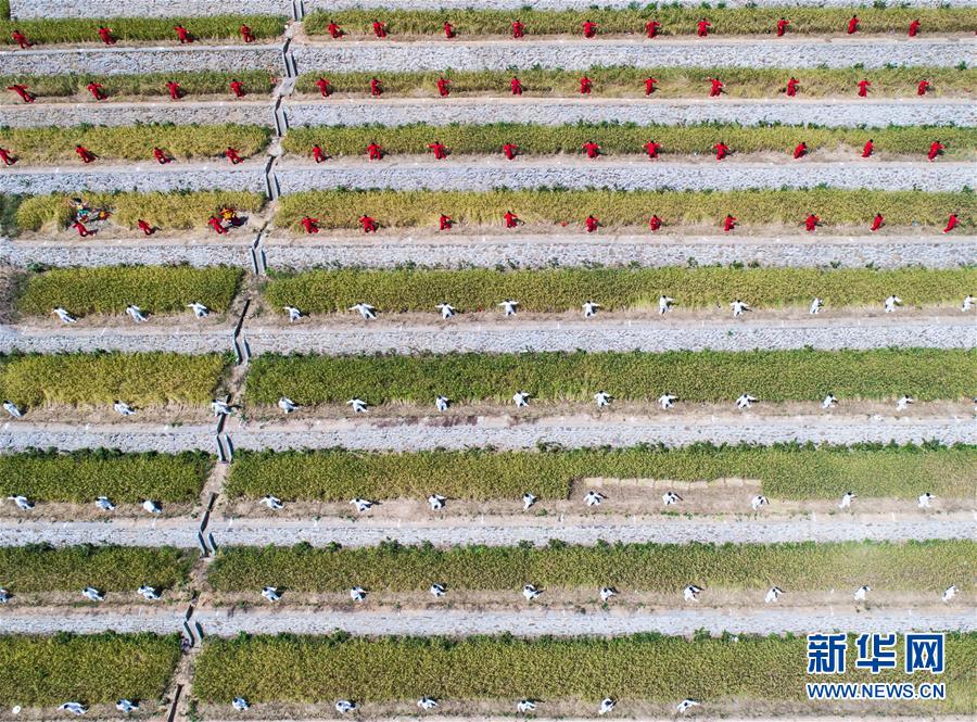 9月29日,太極拳愛好者在建德市大洋鎮(zhèn)高垣村的千畝梯田上進行表演(無人機拍攝)。當日,2000多名太極拳愛好者在浙江省建德市大洋鎮(zhèn)高垣村的千畝梯田上參加太極拳表演,吸引很多當?shù)厝撕陀慰颓皝碛^賞,助力當?shù)亟鹎飼r節(jié)鄉(xiāng)村旅游。近兩年來,大洋鎮(zhèn)充分利用土地整治后形成的千畝梯田打造農(nóng)業(yè)觀光綜合體,發(fā)展綜合型農(nóng)業(yè)觀光旅游,為鄉(xiāng)村振興注入新活力。新華社記者徐昱攝