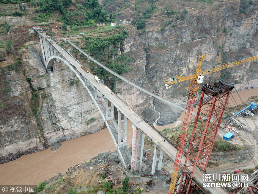 9月28日拍攝的川藏鐵路拉林段重點(diǎn)標(biāo)志性工程藏木特大橋。 當(dāng)日,隨著最后一節(jié)鋼管拱的對(duì)位和鎖定完畢,川藏鐵路拉林段藏木特大橋成功合龍,標(biāo)志著大橋主體結(jié)構(gòu)施工取得了關(guān)鍵性勝利。藏木特大橋由中國(guó)中鐵廣州局集團(tuán)承建,拱高112米,橋橫跨雅魯藏布江峽谷,水深66米。 新華社記者普布扎西攝