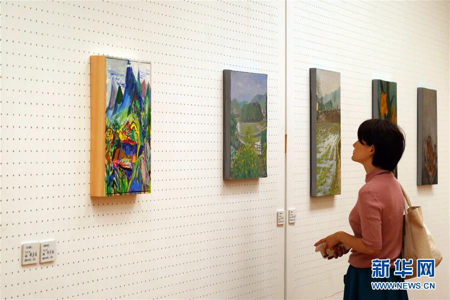 10月8日,在日本東京世田谷美術館,一位觀眾欣賞展出的中國藝術家畫作。 “現(xiàn)代中國藝術東京展”8日在日本東京世田谷美術館開幕。本次展覽共展出當代中國美術界具有代表性的30余幅畫作。 新華社記者王可佳攝