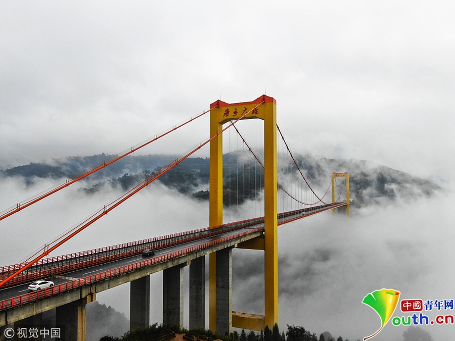 10月9日消息,普立大橋搭建在北盤江上,連接貴州都格與云南普立,北盤江兩岸風光十分秀美,兩省雖然沒有開發(fā)專門的旅游線路和風景區(qū)推薦,可是秀麗的喀斯特風光總吸引一些專門尋找原生態(tài)自然風光的游客。圖片來源:視覺中國