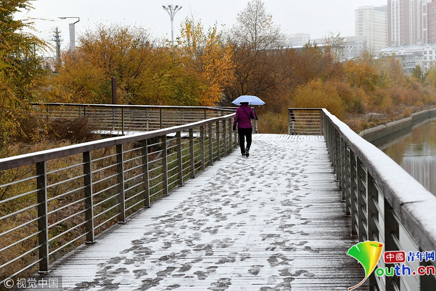 北京冷空氣來襲 游客紛紛著秋冬裝游覽天安門