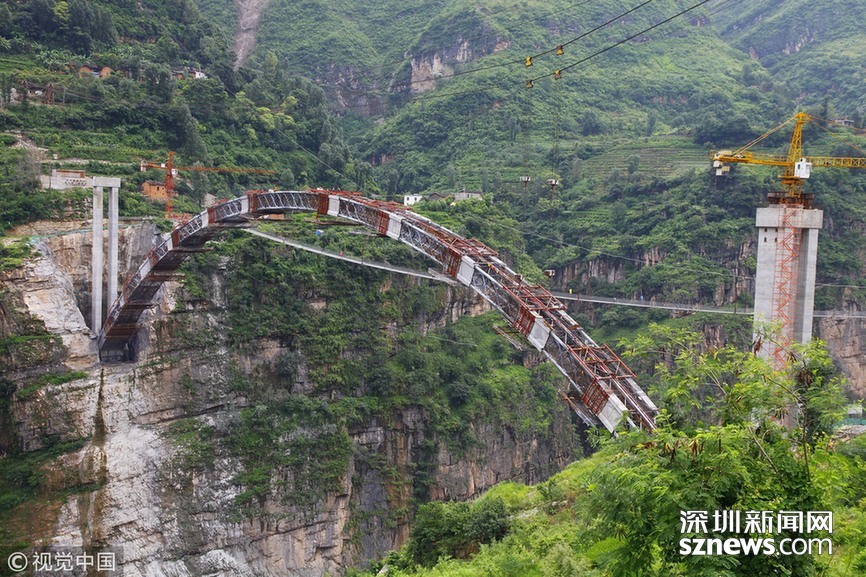 日前,位于貴州、云南交界處,杭瑞高速公路上的“北盤(pán)江第一橋”以其橋面至江面565.4米垂直高度,被吉尼斯官方認(rèn)證為“世界最高橋”。