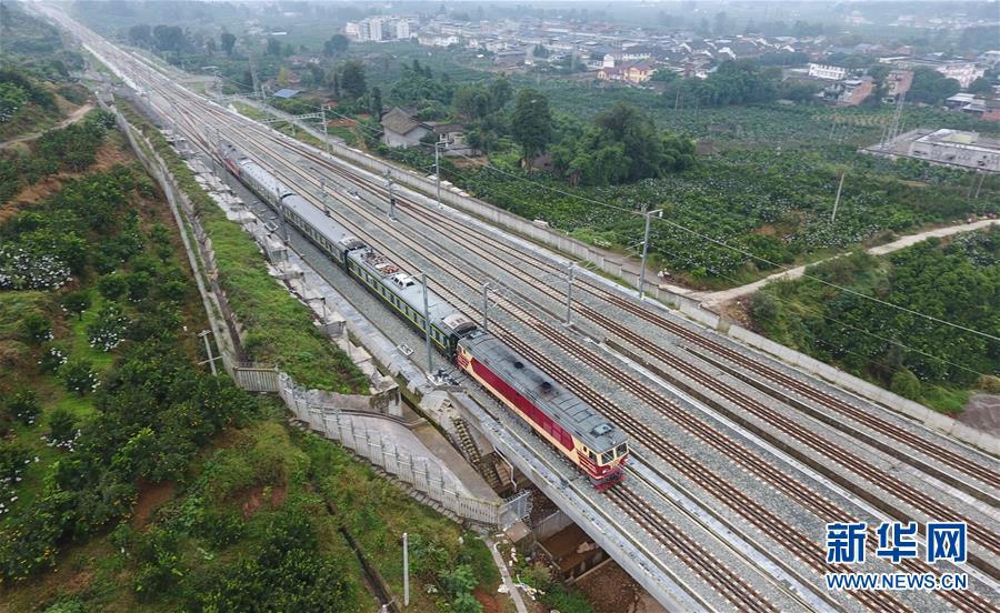 當(dāng)日起,成雅鐵路成朝段啟動聯(lián)調(diào)聯(lián)試工作。成雅鐵路成朝段于2013年8月開工建設(shè),為雙線客運專線,設(shè)計時速200公里。 新華社記者薛玉斌攝