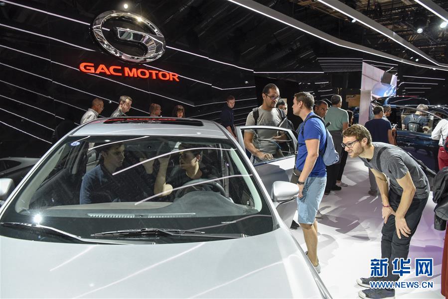 10月14日,在法國巴黎國際車展上,人們參觀廣汽傳祺品牌展臺。 當日,2018年巴黎國際車展閉幕。據主辦方統(tǒng)計,超過100萬人次參觀了本屆車展。 新華社記者 陳益宸 攝