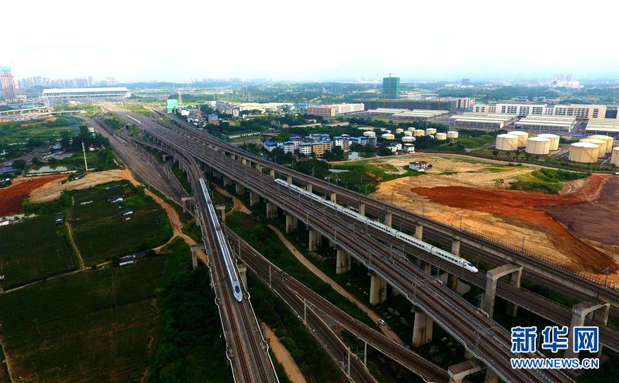 動(dòng)車行駛在廣西南寧市屯里特大橋上(7月1日無人機(jī)拍攝)。 廣西壯族自治區(qū)成立60年來,鐵路建設(shè)發(fā)生翻天覆地的變化。來自中國鐵路南寧局集團(tuán)有限公司的數(shù)據(jù)顯示,1958年廣西鐵路總里程為1346.3公里,如今廣西鐵路總里程達(dá)5191公里。廣西與周邊相鄰省份間實(shí)現(xiàn)動(dòng)車“公交化”開行。此外,北部灣港—重慶班列、東盟海產(chǎn)品冷鏈班列、“百色一號(hào)”果蔬專列等的開通和運(yùn)營,強(qiáng)化了鐵路供給的針對(duì)性和有效性。鐵路成為助推廣西經(jīng)濟(jì)社會(huì)快速發(fā)展的“大動(dòng)脈”。 新華社記者黃孝邦攝