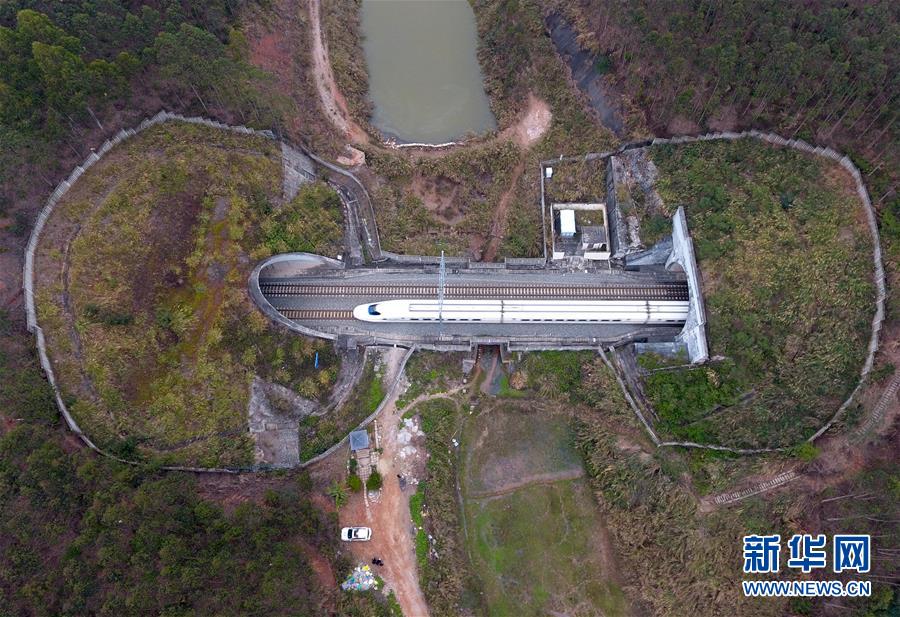 一列動(dòng)車(chē)穿越南寧郊區(qū)一處隧道(2月11日無(wú)人機(jī)拍攝)。 廣西壯族自治區(qū)成立60年來(lái),鐵路建設(shè)發(fā)生翻天覆地的變化。來(lái)自中國(guó)鐵路南寧局集團(tuán)有限公司的數(shù)據(jù)顯示,1958年廣西鐵路總里程為1346.3公里,如今廣西鐵路總里程達(dá)5191公里。廣西與周邊相鄰省份間實(shí)現(xiàn)動(dòng)車(chē)“公交化”開(kāi)行。此外,北部灣港—重慶班列、東盟海產(chǎn)品冷鏈班列、“百色一號(hào)”果蔬專(zhuān)列等的開(kāi)通和運(yùn)營(yíng),強(qiáng)化了鐵路供給的針對(duì)性和有效性。鐵路成為助推廣西經(jīng)濟(jì)社會(huì)快速發(fā)展的“大動(dòng)脈”。 新華社記者陸波岸攝