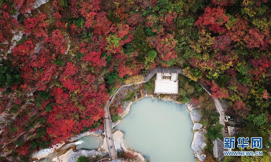 金秋時節(jié),甘肅省隴南市成縣西狹頌景區(qū)層林盡染,峽內石崖、池潭、樹木、山峰構成五彩斑斕的秋日美景圖,引人入勝。