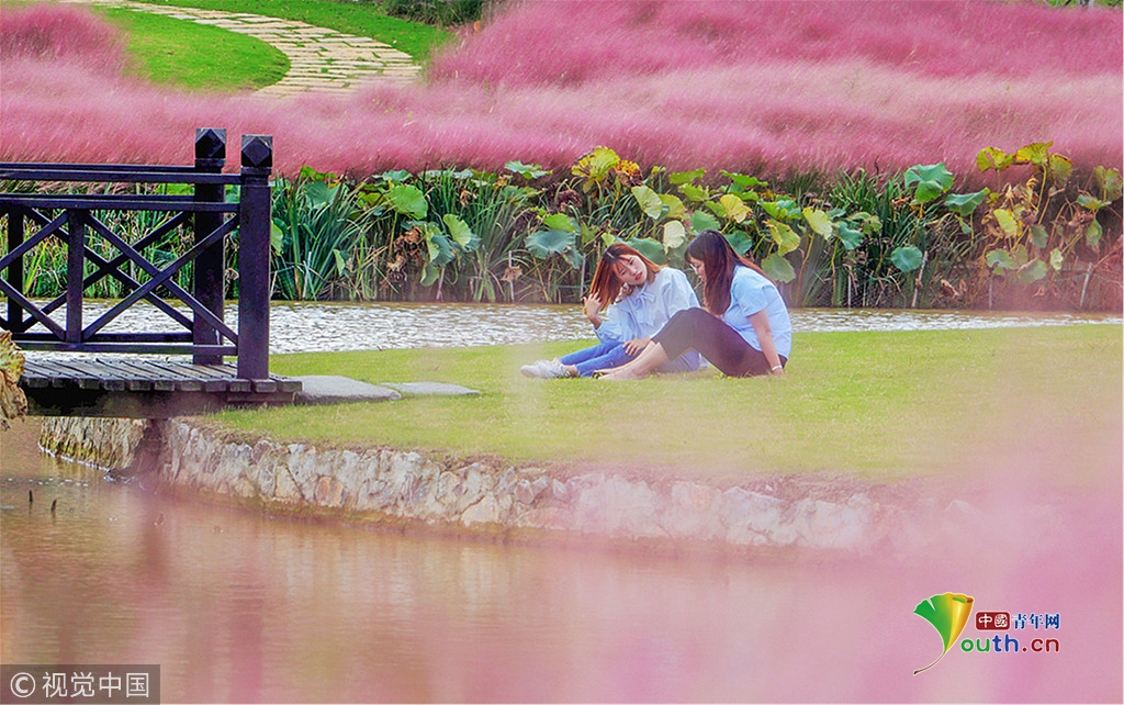 中國(guó)青年網(wǎng)北京10月7日電 2018年10月6日,游客在“粉色田野”里游玩、留影。粉黛亂子草是一種觀賞草種,該植物夏季為主要生長(zhǎng)季,全株綠色,花期為9月中旬至11月中旬,開花時(shí),綠葉為底,粉紫色花穗如發(fā)絲從基部長(zhǎng)出,遠(yuǎn)看如紅色云霧。