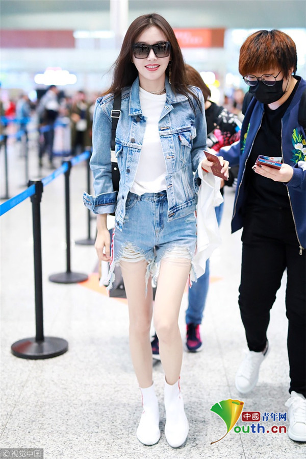 2018年10月17日,上海,秦嵐現(xiàn)身機(jī)場。她一身牛仔LOOK露出白皙長腿,雪膚紅唇美得不可方物,長發(fā)飄飄玉手撩發(fā)女神范十足。