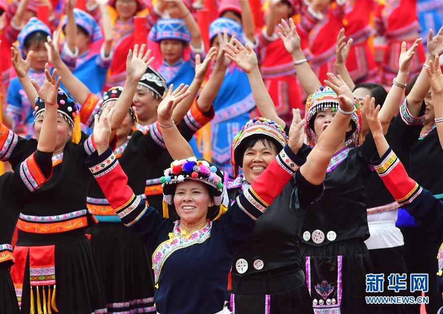 10月20日,各族同胞在廣西大化瑤族自治縣江濱文化廣場表演節(jié)目,慶祝縣慶?!⌒氯A社記者黃孝邦攝